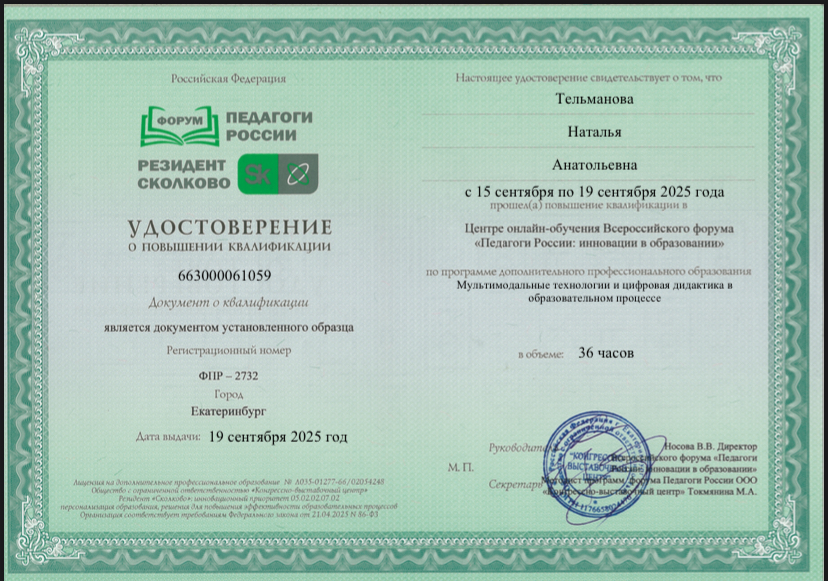 (Центр онлайн- обучения Всероссийского форума «Педагоги России». 36часов.).